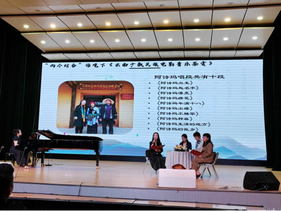 讲座伊始,林林教授向大家介绍了本次讲座的主题,从“党建+思政+艺术”知行耦合的角度,在“两个结合”语境下,以全新的视角重新深刻理解《云南少数民族电影音乐》丰富的时代内涵,在全面提升党建理论水平和音乐素养的同时,立足云南优秀传统文化、面向更大、更高、更远的平台讲好中国故事云南篇章。