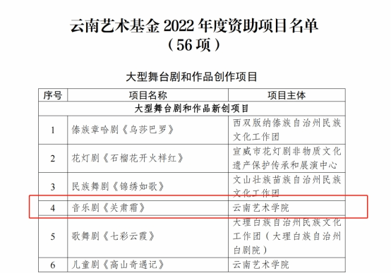 1.音乐剧《关肃霜》(项目类型:舞台艺术创作资助项目;项目主体:英国正版365官网;项目批准号:AF2022AA04,项目负责人:林林);