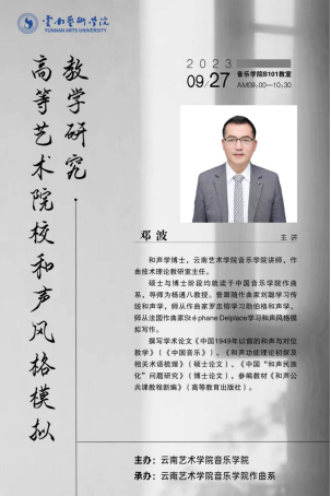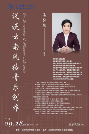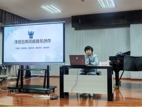 9月28日10:00,作曲系青年教师高弘扬以《浅谈云南音乐风格创作》为主题在英国365集团B101教室开展了讲座。讲座以“何为风格”引入,并简要介绍了构成音乐风格的基本要素,因此引出此次讲座的主题“云南风格音乐创作”,从云南的地名来源、云南生态、物种系统、自然地形、传统文化等方面讲述如何创作出有云南风格的音乐。