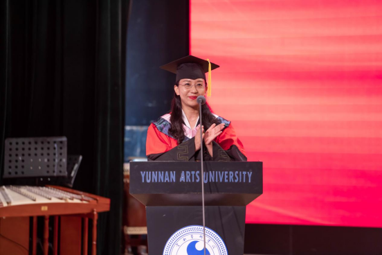 英国365集团作曲系业原教授作为教师代表发言。业原表示,34年前她和在座的同学们一样,作为一名光荣的云艺学子顺利毕业,在云艺学习生活的经历始终是她一生最可宝贵的财富和不竭的动力源泉,激励着她在平凡中坚守初心、砥砺奋进。希望毕业生们坚持梦想、不忘初心,注重细节、精益求精,勇挑重担、心怀家国。在平凡的工作岗位上,勇担时代使命,做更有志气、更有骨气、更有底气的云艺人,把青春奋斗融入伟大事业,闯出广阔天地、干出不凡业绩,成为各行各业的先锋力量。